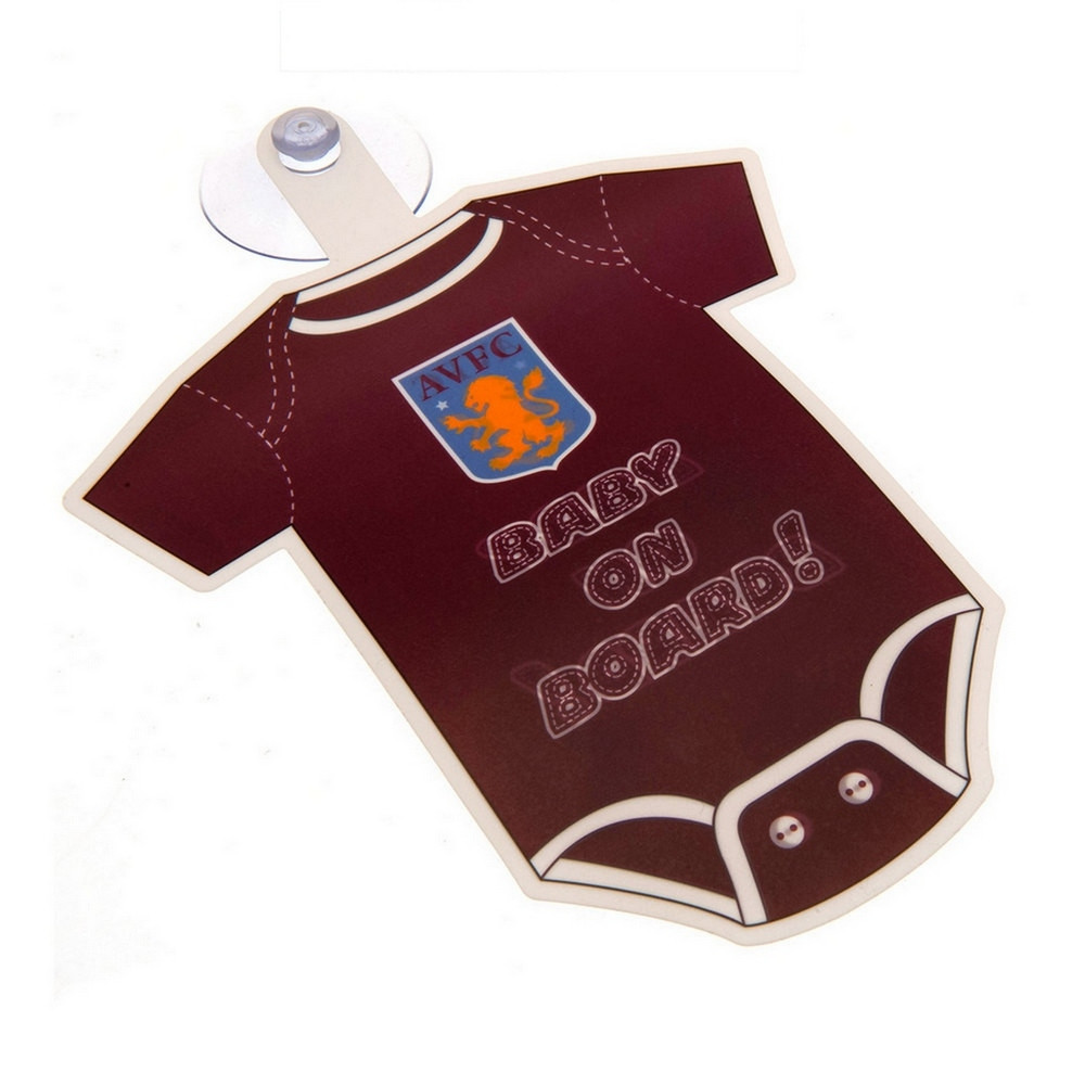 Aston Villa FC "Baby On Board" Car Sign, Claret Bodysuit Design